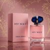 Giorgio Armani My Way Perfume In a Blush Pink Glass Bottle With a Navy Blue Gemstone Cap