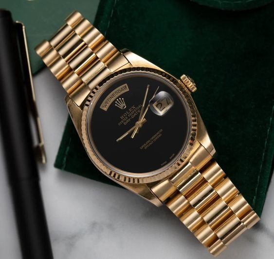 Rolex Yellow Gold Onyx Day-Date Watch