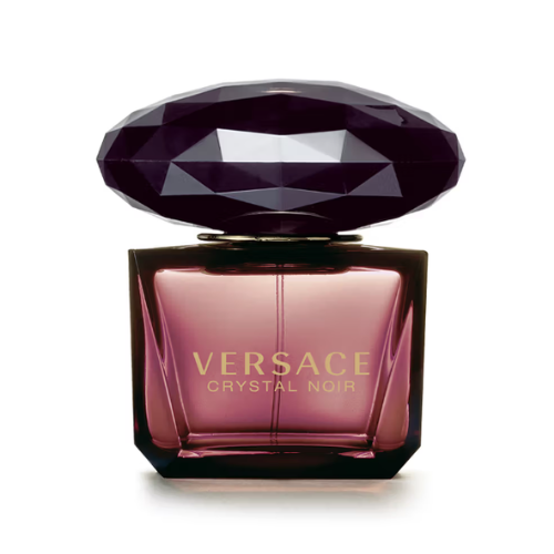 Versace Crystal Noir Perfume With a Deep Purple Bottle And Black Gold Packaging